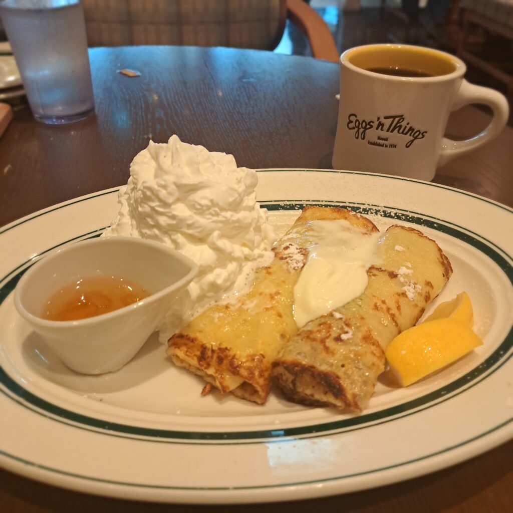 Eggs ‘n Thingsとは反対に生地はしっかり甘味があり、